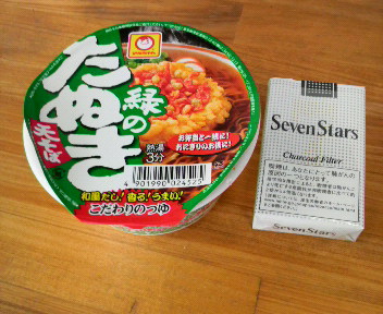 昼飯は“緑のたぬきミニ”&セブンスター。“ボス”の定番だな!