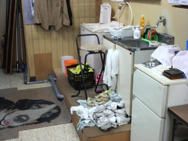 フロアーに洗濯物、ロッドに今日の会計…。