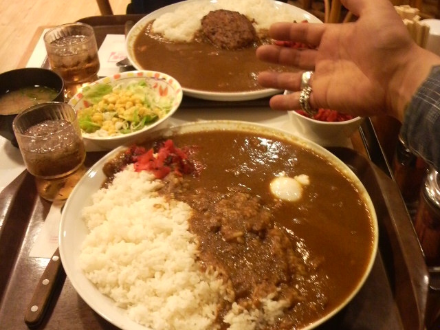 なんだこりゃ~☆見たらテーブルいっぱいになった二皿のカレーが運ばれて来ちゃった!