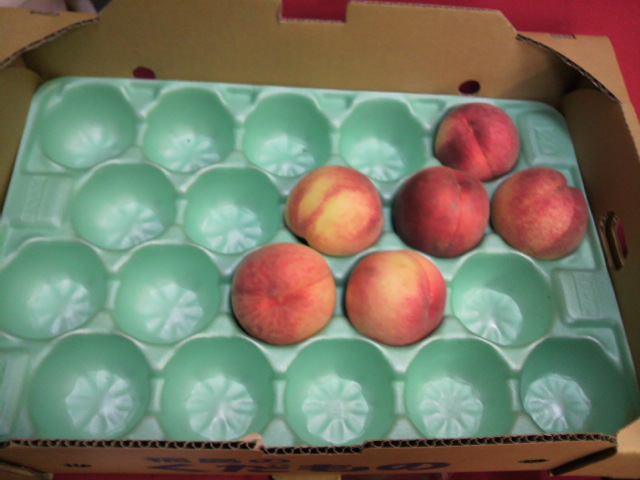 客人のN塚君が福島行った土産に桃を買ってきてくれた♪