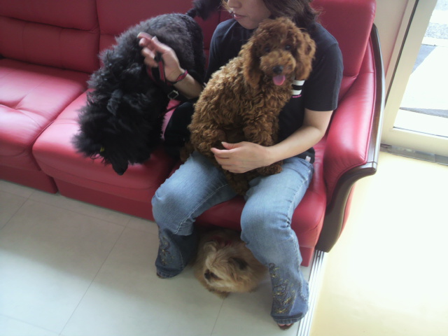 二匹のトイプードル。トイの割りにはデカイ気がするけど。