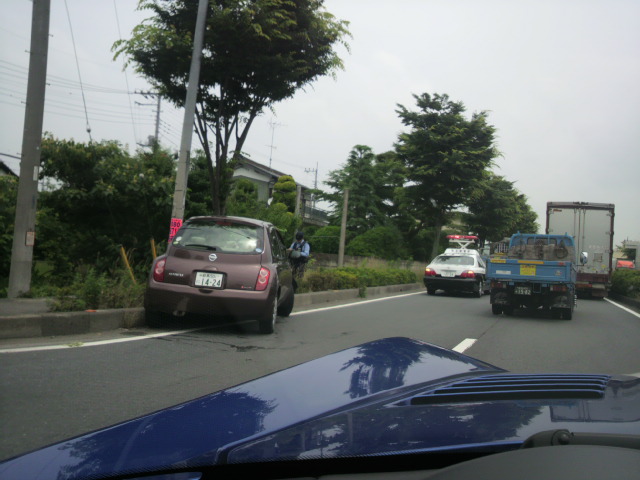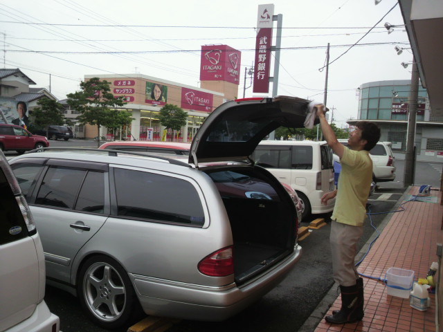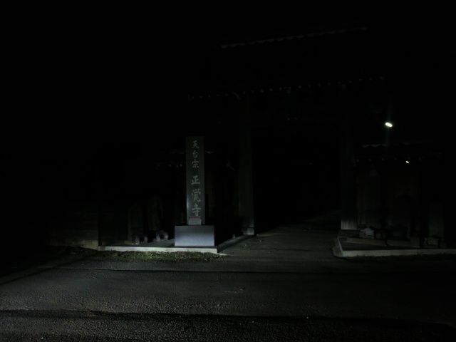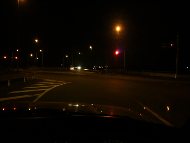真っ暗で良く見えないから車のライトでライトアップ。