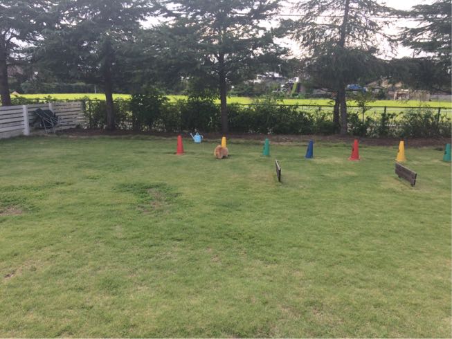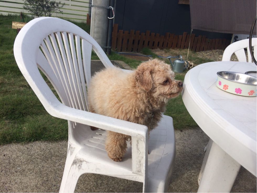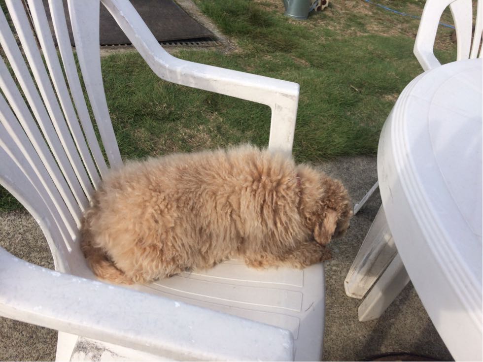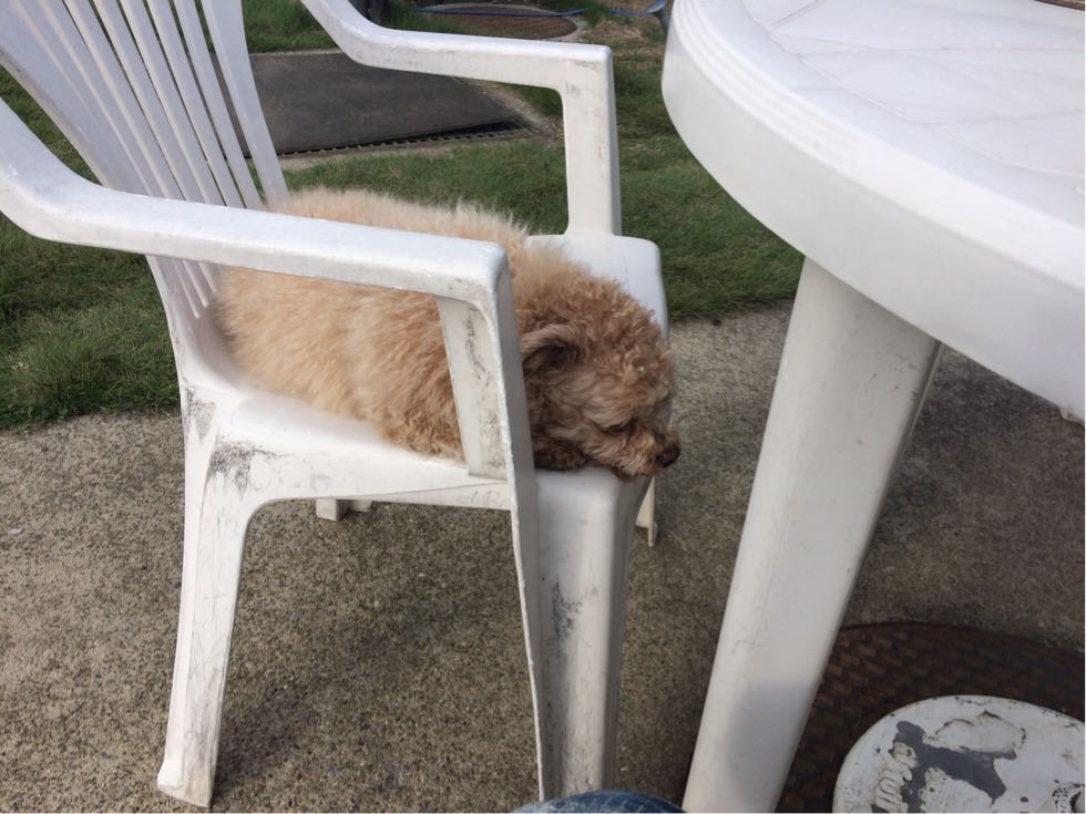 小梅はお外で休憩中。