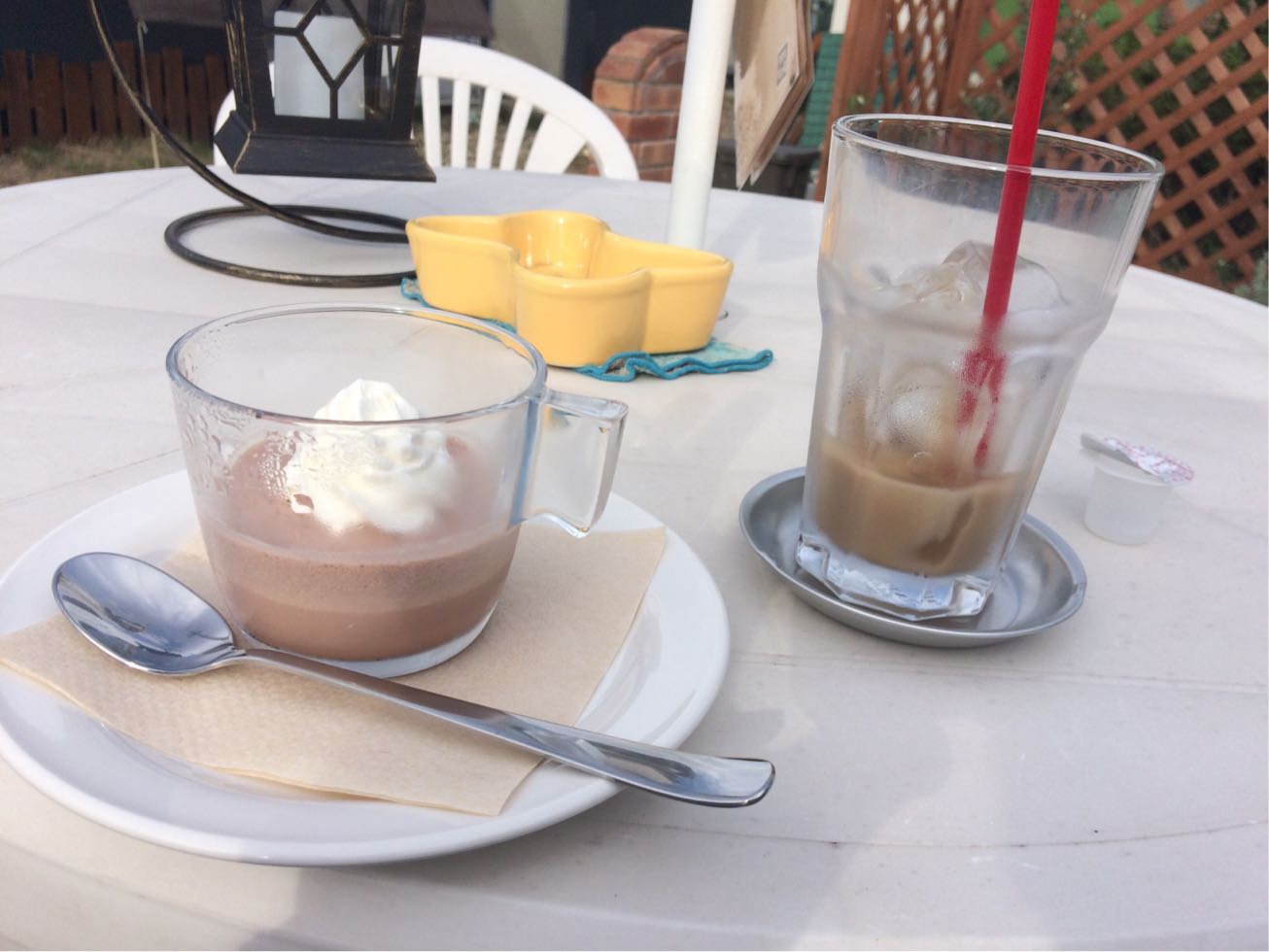 アイスカフェオレとババロア食べて休憩中!