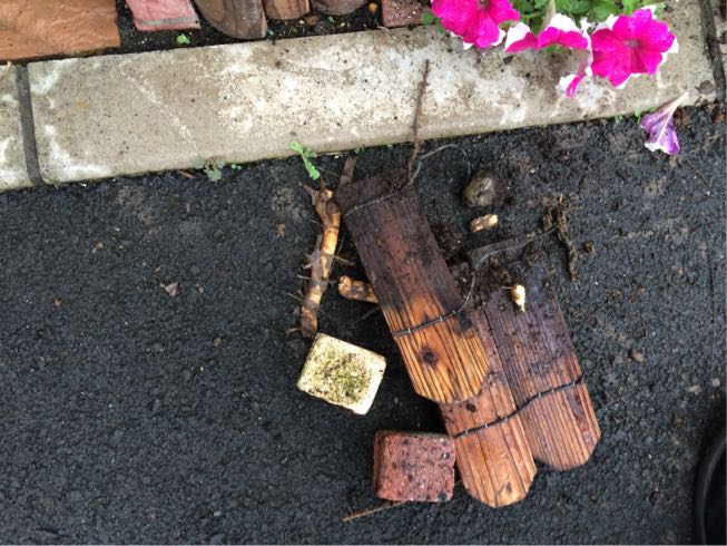 せっかく作った花壇を掘り返して行ったらかなりゴツい根っこがあるし…。