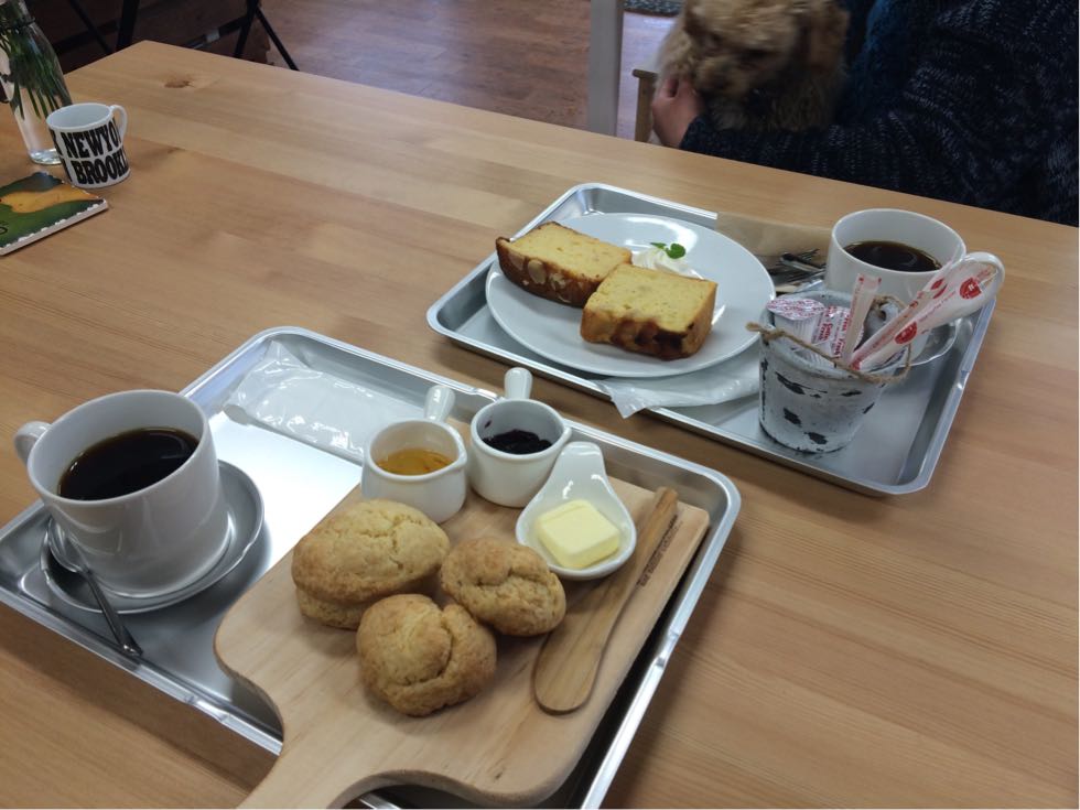 君ちゃんとミニカフェでケーキセットを食べながら休憩中。
