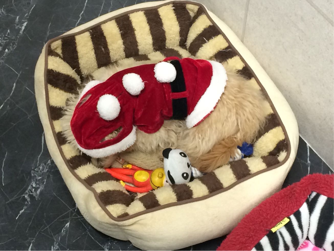 小梅サンタ持って疲れた模様。