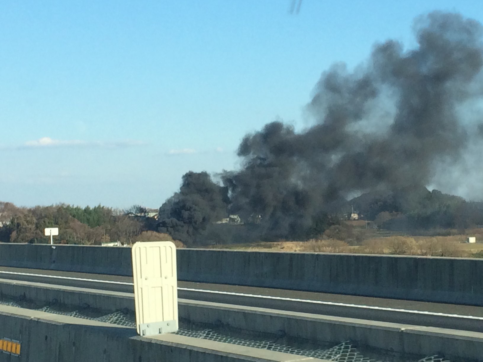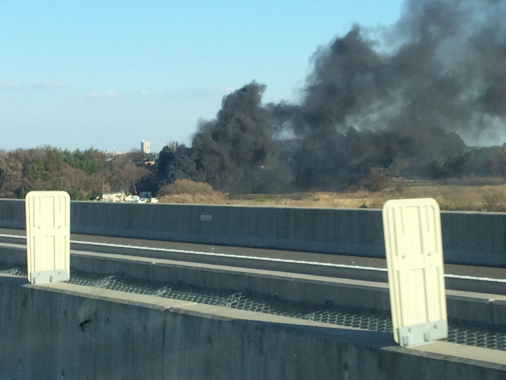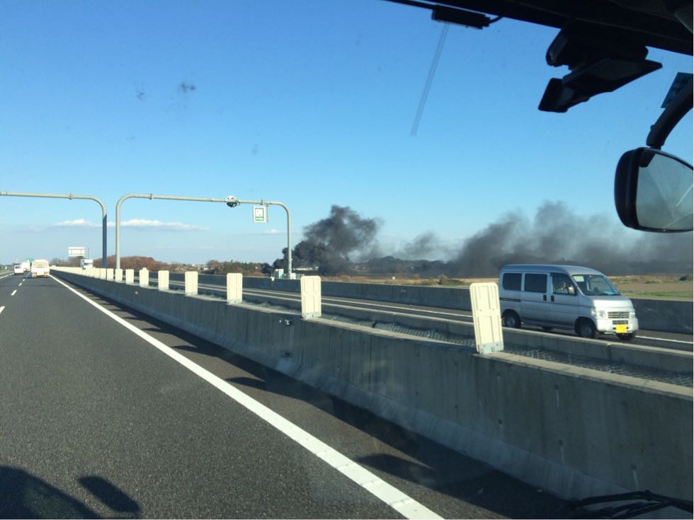 河川敷から真っ黒の煙発見!