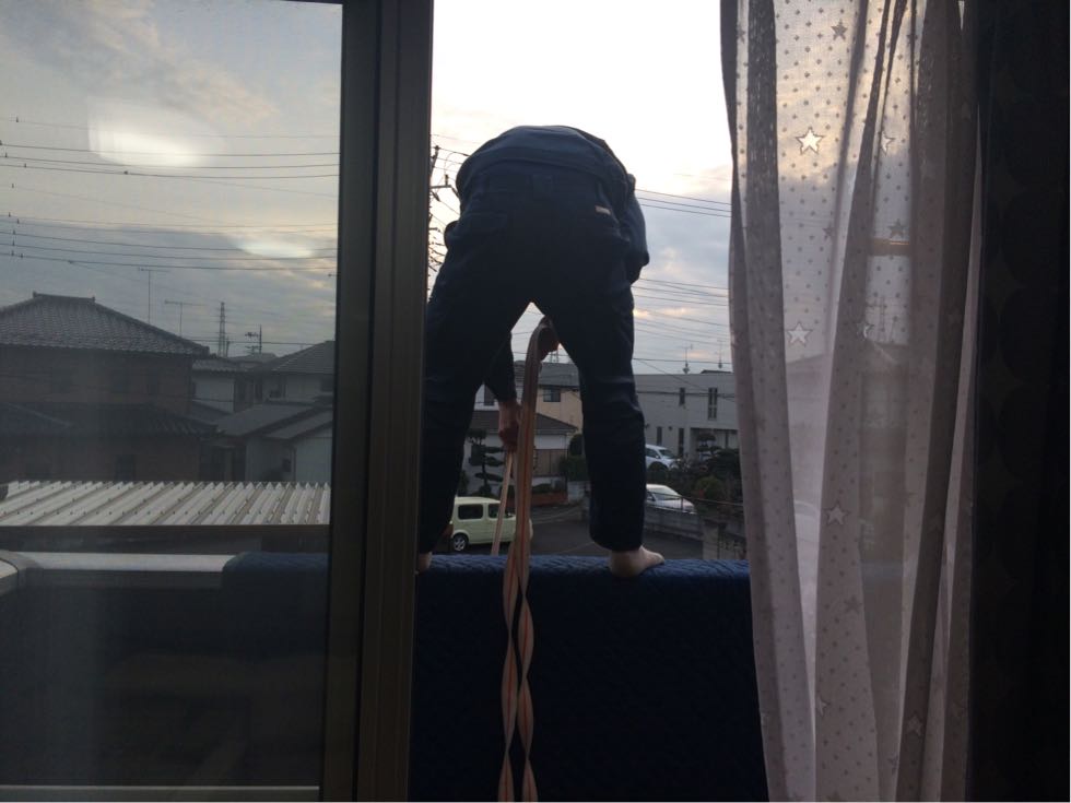 玄関から入らなかったのでバルコニーから引き上げる模様。