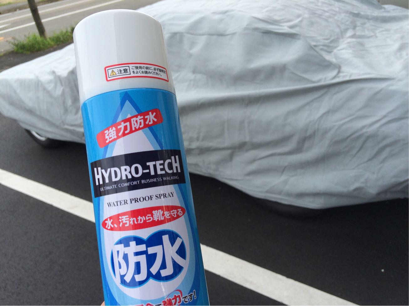 靴用の防水スプレー、カーカバーにしたら防水になると思う!