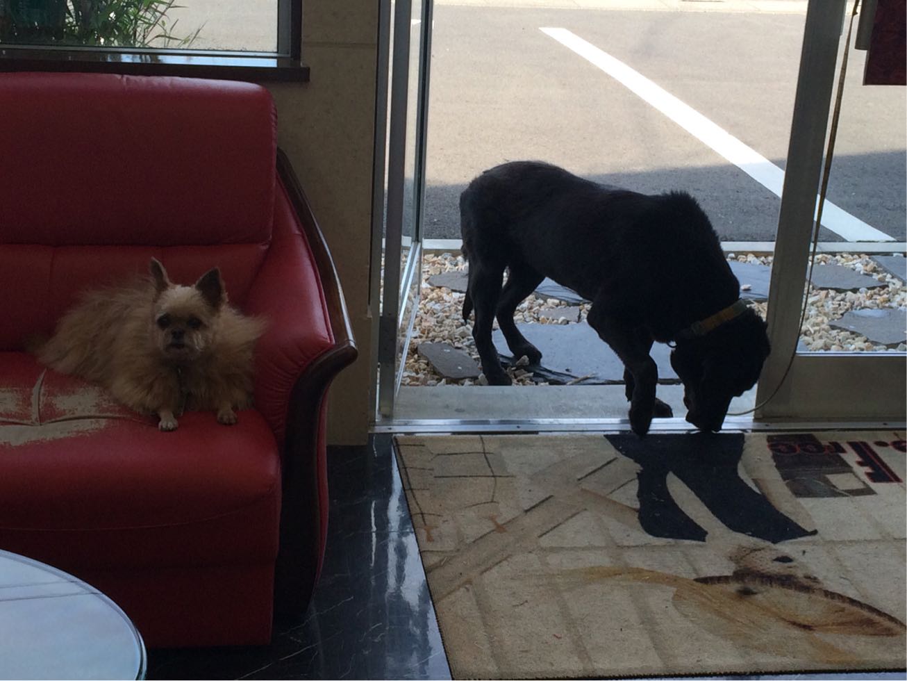店の前をフラッフラに歩いてるワンコが…。