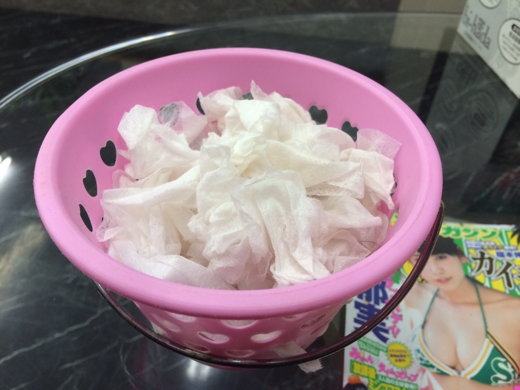 パーマのペーパー、小バケツにパンパン。