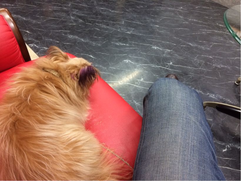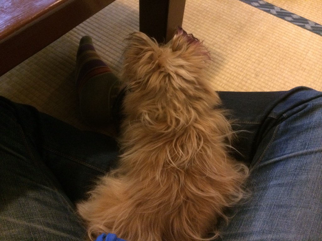 食事も終わって膝の上で一休み。