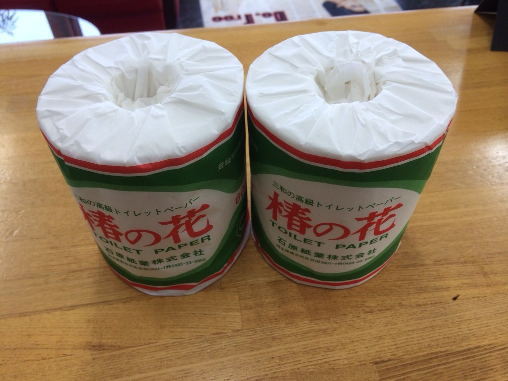 やっと捕まえたらトイレットペーパー二個だし…。