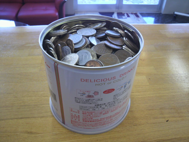 ポッケに入ってる小銭をポンポン入れてたらパンパンになっちゃった!