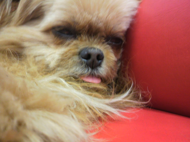 半目にベロ出し就寝…。
