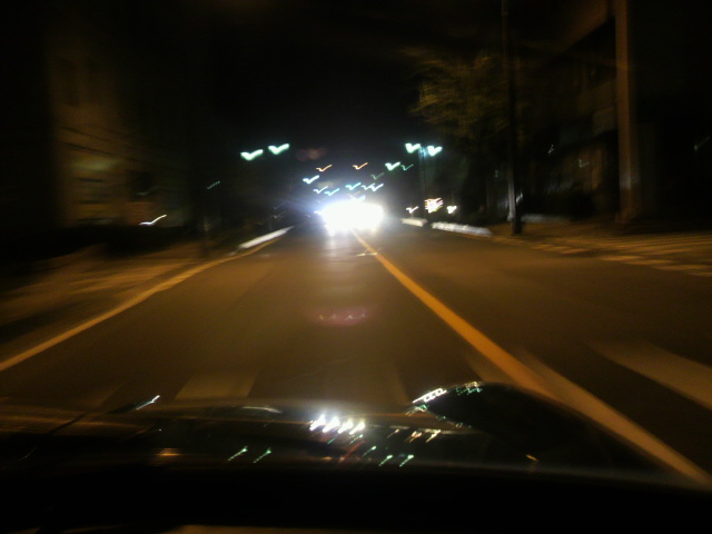 写真の対向車のライトがえらく近い。