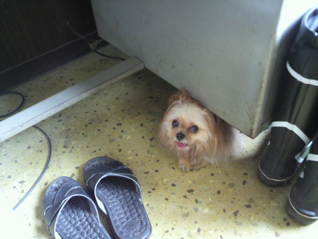 今度はクラブハウスの裏の事務所の机の下に…。