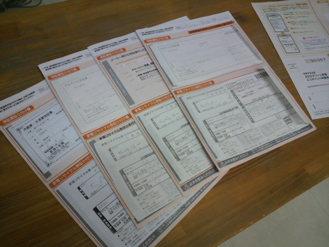 リサイクル証明書、保証書も揃いまとめてエコポイント書いちゃいます。