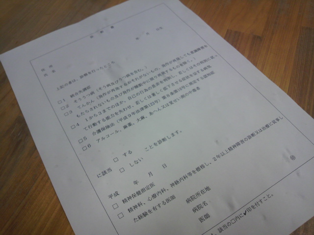 法律が変わり精神科の診断書が必要になりました。